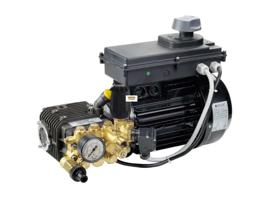 Vysokotlaké čerpadlo Comet MTP LW-K 11/190 TSR s motorem Elektromotor MEC 100. Mosazná hlava čerpadla. Vestavěný obtokový ventil. Hliníková kliková skříň. Zpětné ventily z nerezové oceli. Keramické písty. Bronzová ojnice. Dvojité textilní těsnění.
