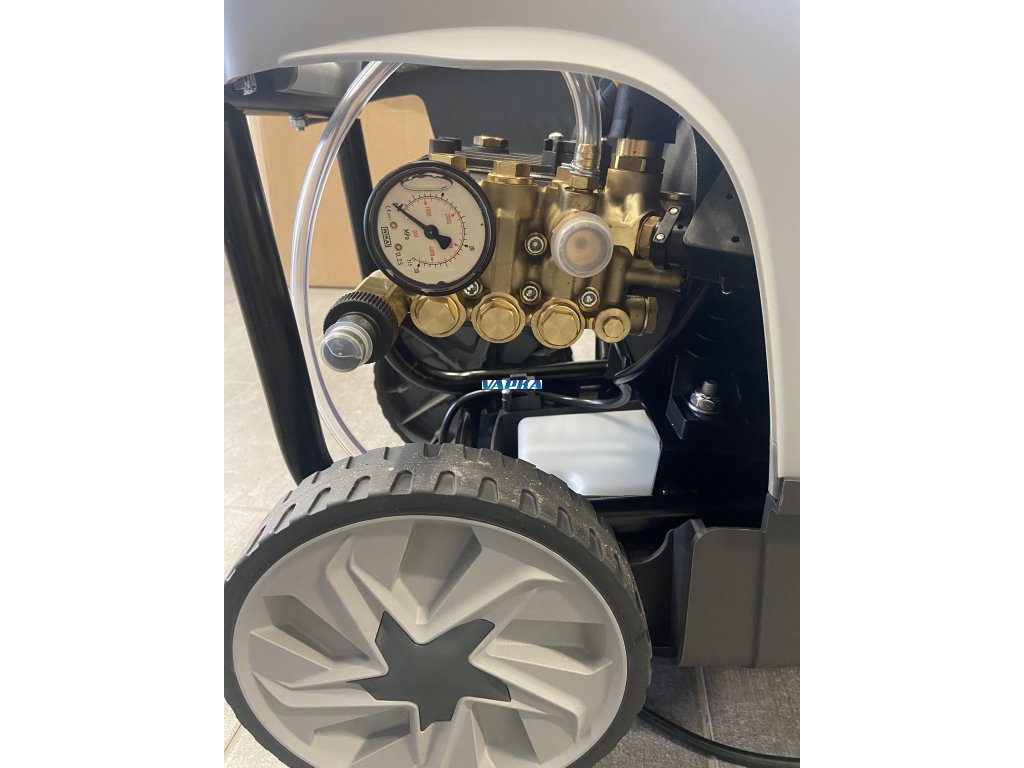 K 250 11/160 EXTRA TSR Tyto vysokotlaké čističe jsou osazeny pomalu běžným INDUKČNÍM 4-pólovým motorem s 1400 ot./min a RW)s klikovou hřídelí) čerpadlem. Tato vysokotlaká čistící technika určuje stroj pro profesionální použití v menších firmách, menších zemědělských provozech ale i pro Hobby použití apod. Dalšími technickými přednostmi této řady jsou profesionální regulační blok pro pohodlné nastavení výkonu stroje, funkce Total-Stop . Zabudovaný manometr pro okamžité sledování pracovního tlaku a také 3,5 l nádoba na čisticí přípravek. Je zde možnost provozovat stroj v horizontální i vertikální poloze. Kvalitní kolečka zajistí snadný pojezd. Výkonové parametry stroje předurčují stroj pro méně náročné práce. Poměr ceny a užitné hodnoty je naprosto bezkonkurenční - tato řada již používá radiální čerpadlo s keramickými písty, bronzové vedení pístů a mosaznou hlavu čerpadla. Čerpadlo má také snadno přístupný olejoznak pro rychlou kontrolu stavu oleje. K dispozici také verze s navíjecím bubnem.