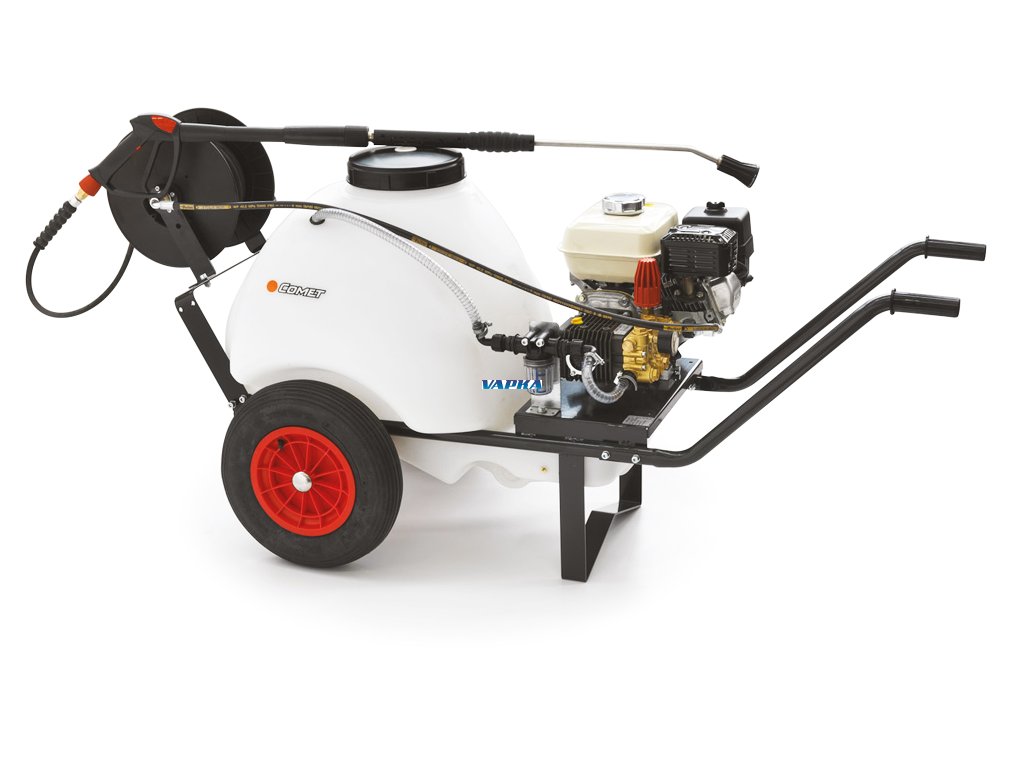 Vapka je vybavená Polyetylenovou nádrží 120 LT na čistou vodu. Lakovaný ocelový rám a kolečka s pryží proti proražení umožnují wapku používat v nedostupných místech. Motor Honda GX160 je vybaven čerpadlem Comet LWD-K s klikovou hřídelí s dlouhou životností . Samonasávací triplex s keramickými písty, mosaznou hlavou a profesionálním regulačním ventilem. Sací filtr (externí kontrolovatelný filtr na vstupu čerpadla), Nízkotlaké sání čisticího prostředku s regulací. Příslušenství : Stříkací pistole GH301 s otáčením, Hadicový naviják s 15m vysokotlakou hadicí G1/4.