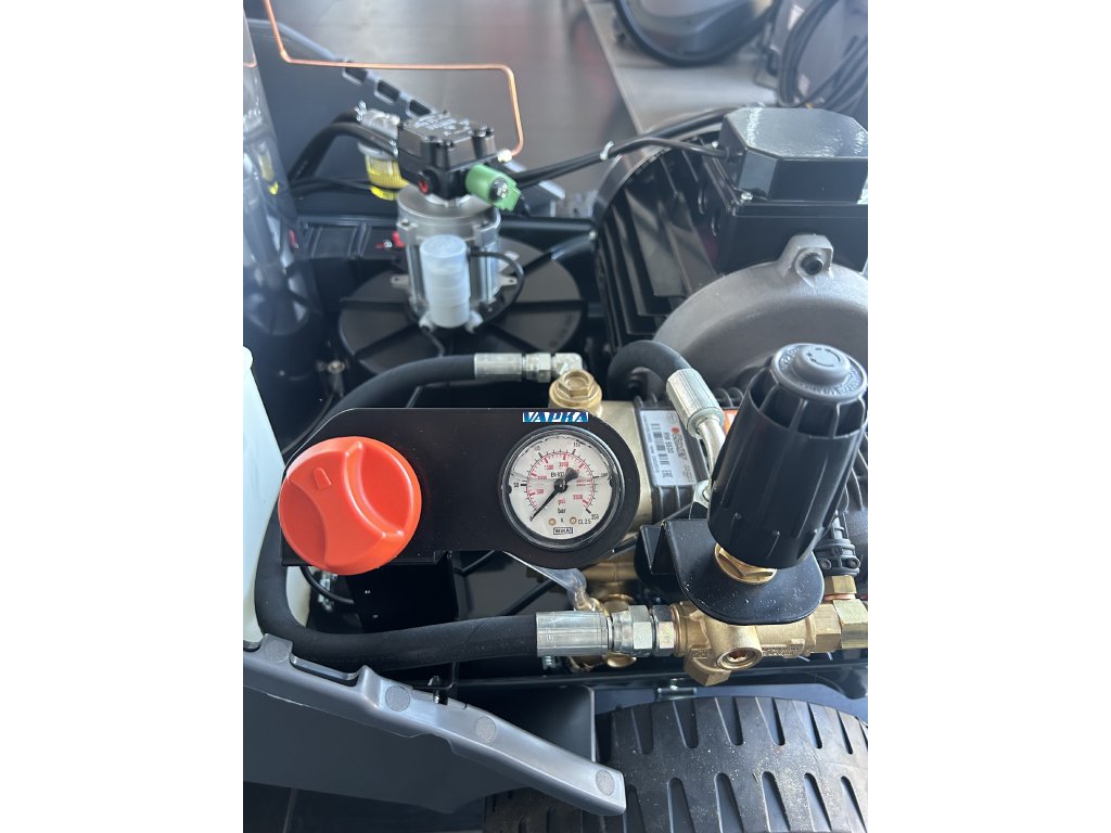 Dlouhou životnost stroje a spolehlivost zajistí vysoce výkonné tlakové čerpadlo s KLIKOVOU HŘÍDELÍ s vysokou životností, profesionální regulační blok, zpožděný Total-Stop, pomaloběžný motor s 1400 ot./min., vlastní motor ventilátoru hoření a další. Pro snadnou práci se strojem Vám poslouží diody, které Vás upozorní na nedostatek paliva nebo nízké napětí. Nastavitelná teplota ohřevu, manometr, snadná obsluha a jednoduchý přístup při servisu jsou dalšími vlastnostmi, pro které je tento stroj ideálním pomocníkem.